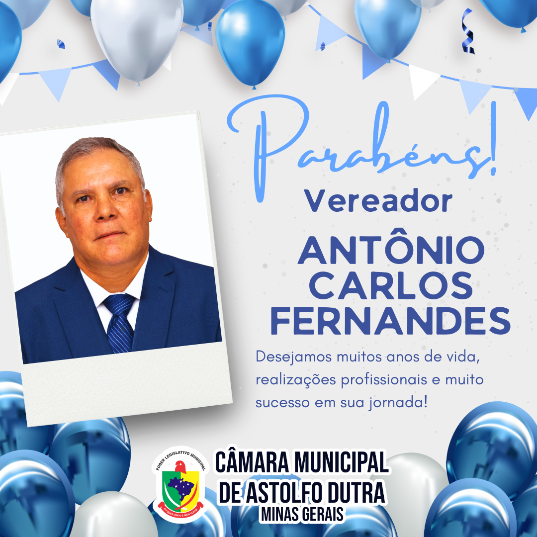 Hoje é um dia especial para todos nós que fazemos parte da Câmara Municipal de Astolfo Dutra, pois celebramos o aniversário do querido Antônio Carlos Fernandes.